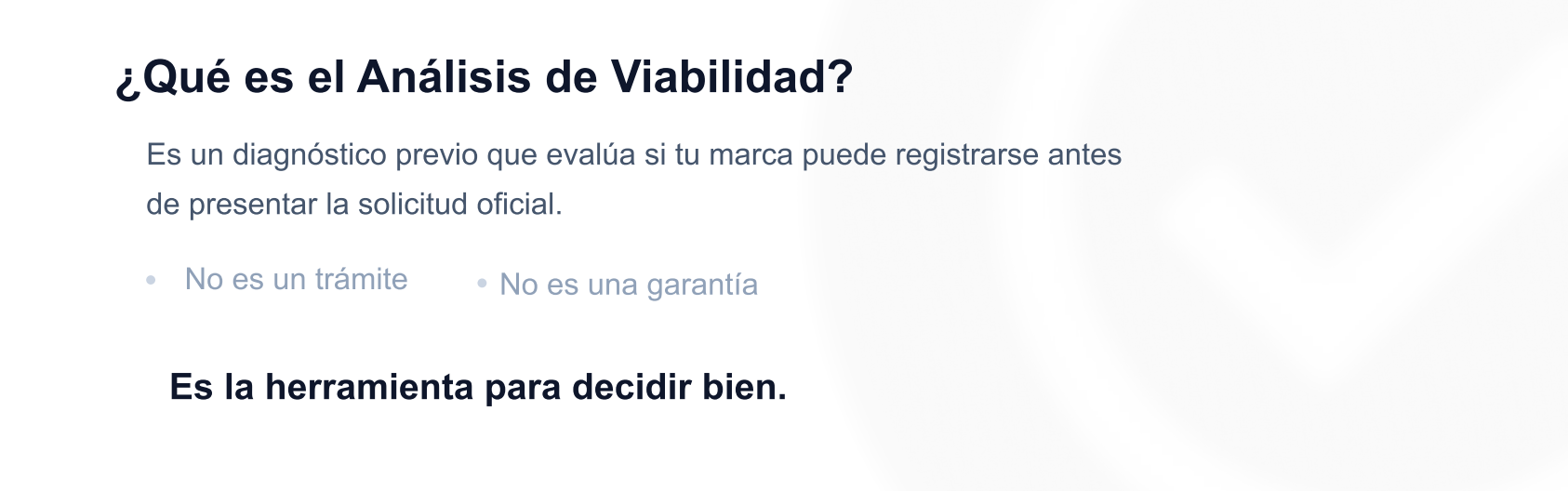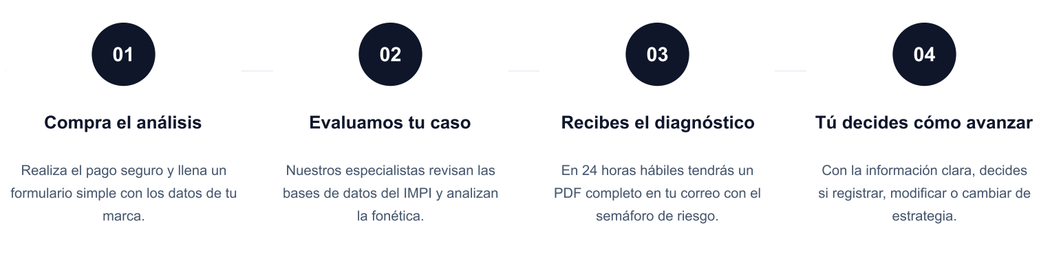 En 24 horas te entregamos un Análisis de Viabilidad que te dice si tu marca puede ser rechazada por el IMPI, cuál es el riesgo real y qué hacer antes de invertir dinero.